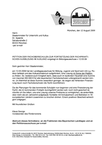 | PETITION Finanzierung der Fachpraktischen Ausbildung im Ausland (FpAA) an Fachoberschulen (Januar 2009) |